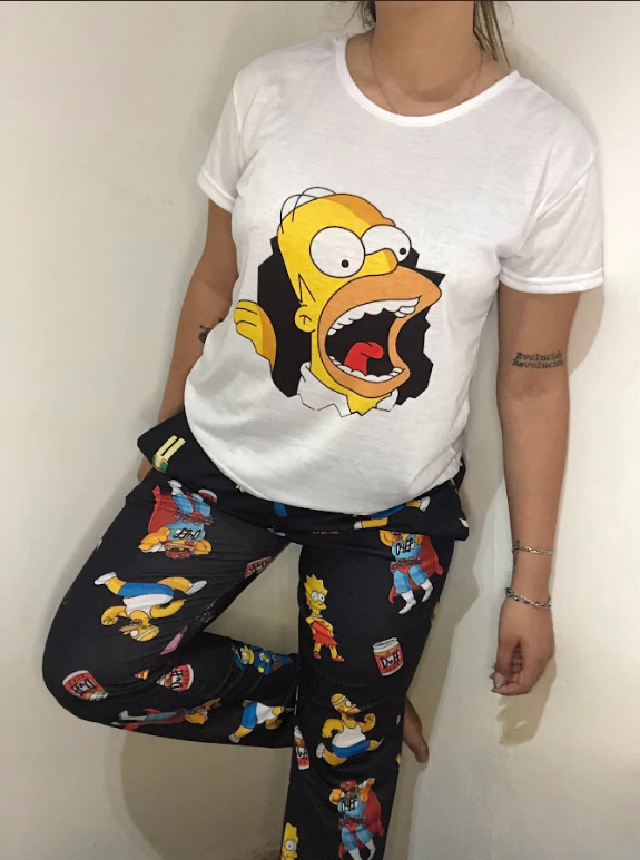 Remera manga corta con personajes y pantalon con bolsillos de estampado full.